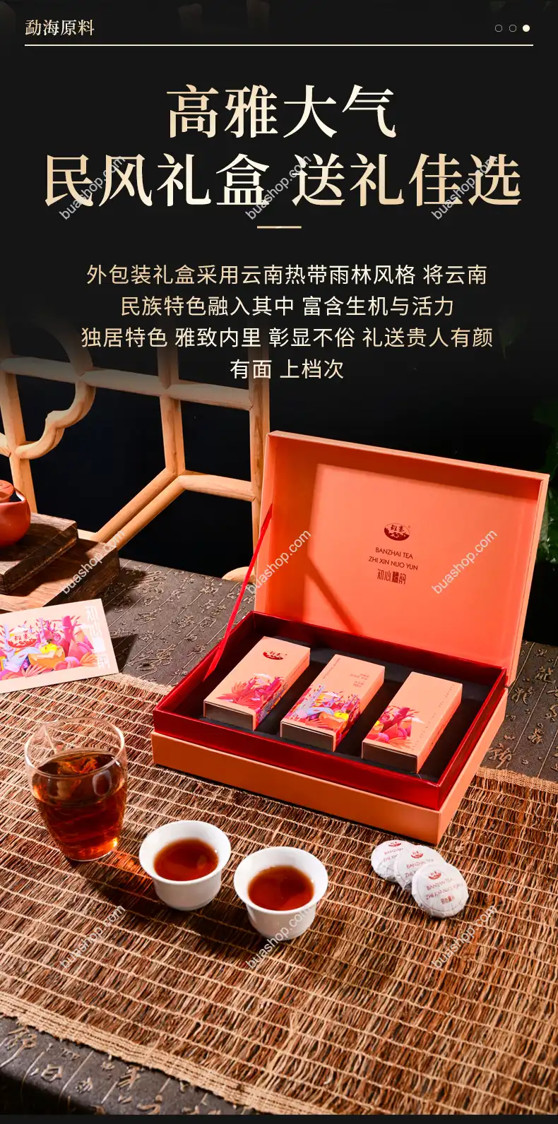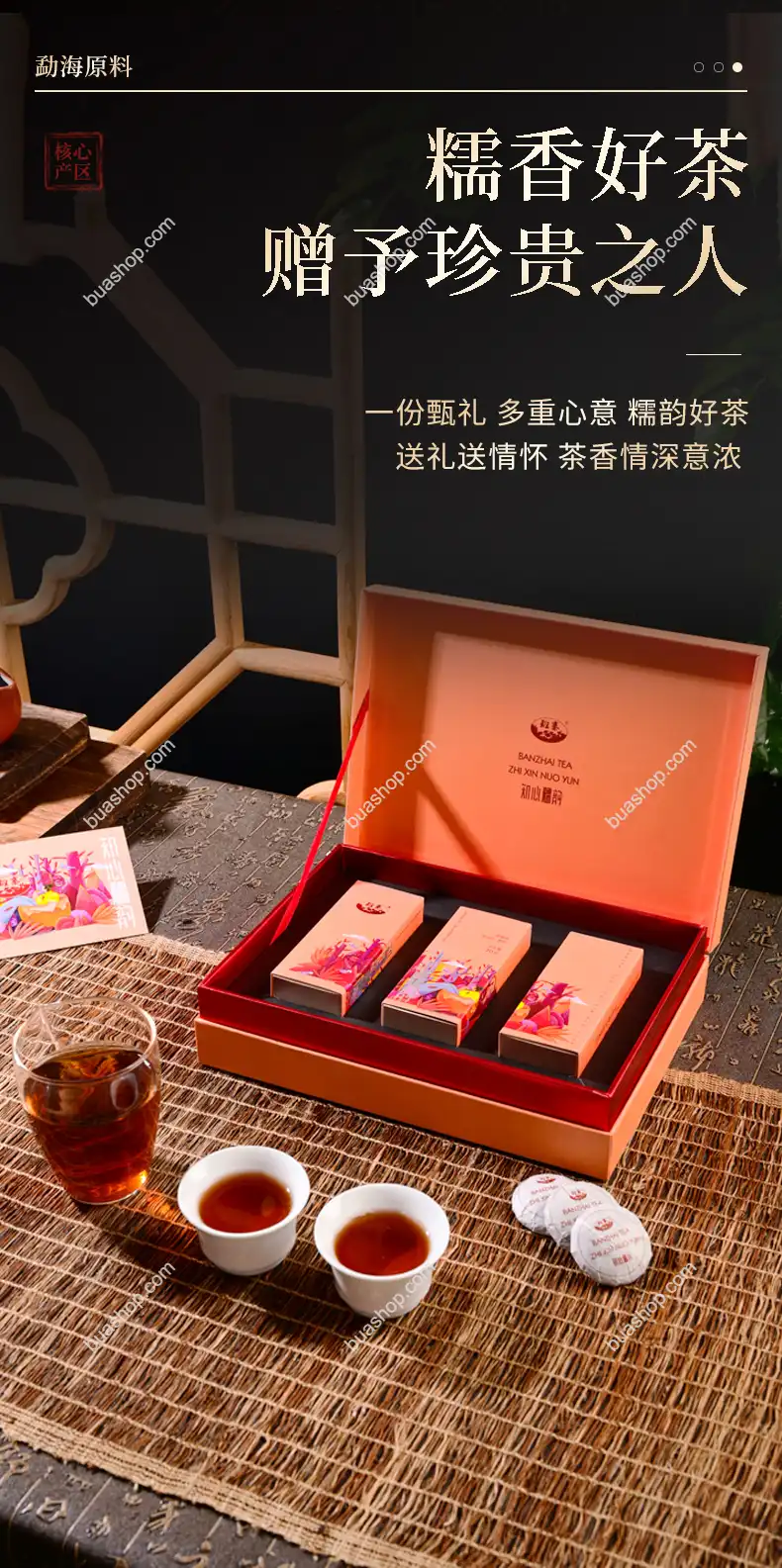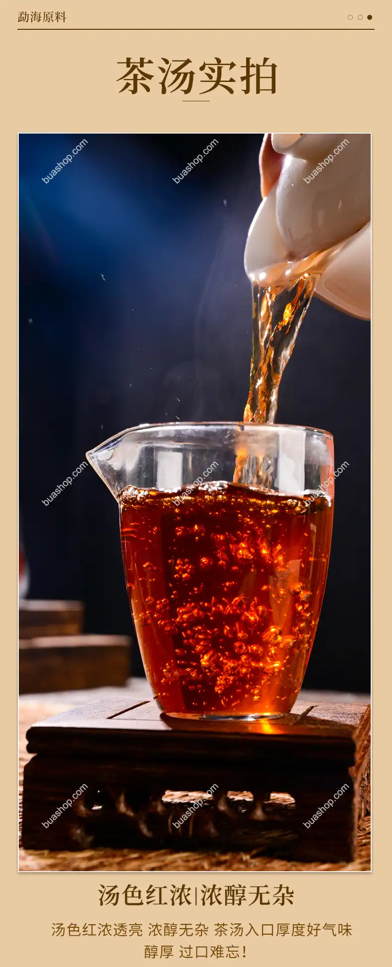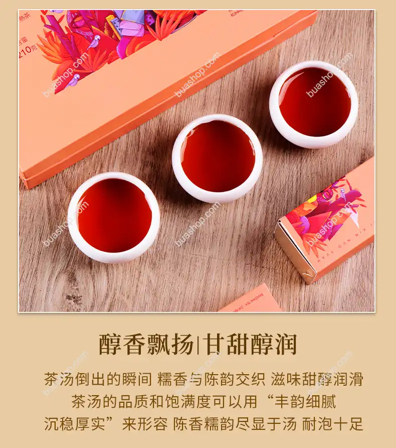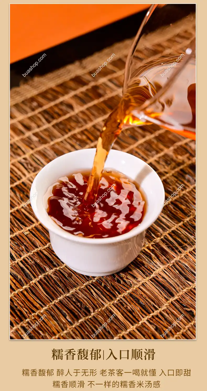 熟普:渥堆發酵工藝,湯色紅濃,入口順滑;