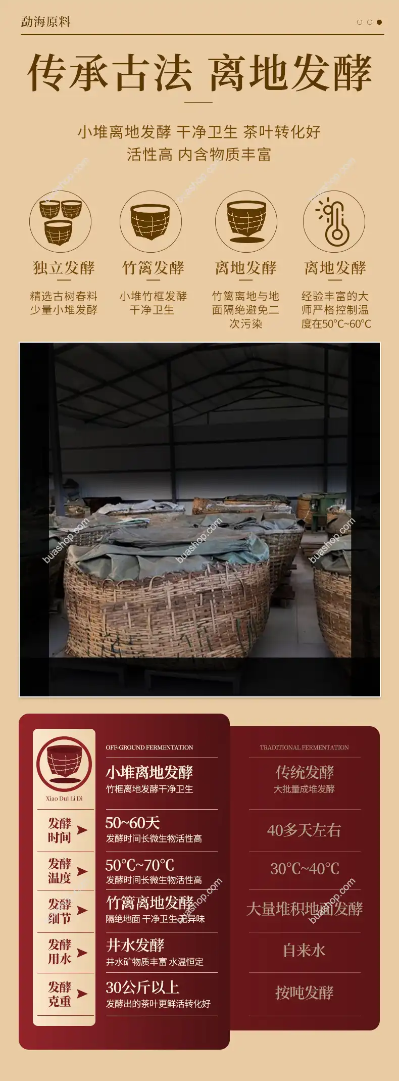 生普:自然陳化,口感隨年份轉化更醇厚;